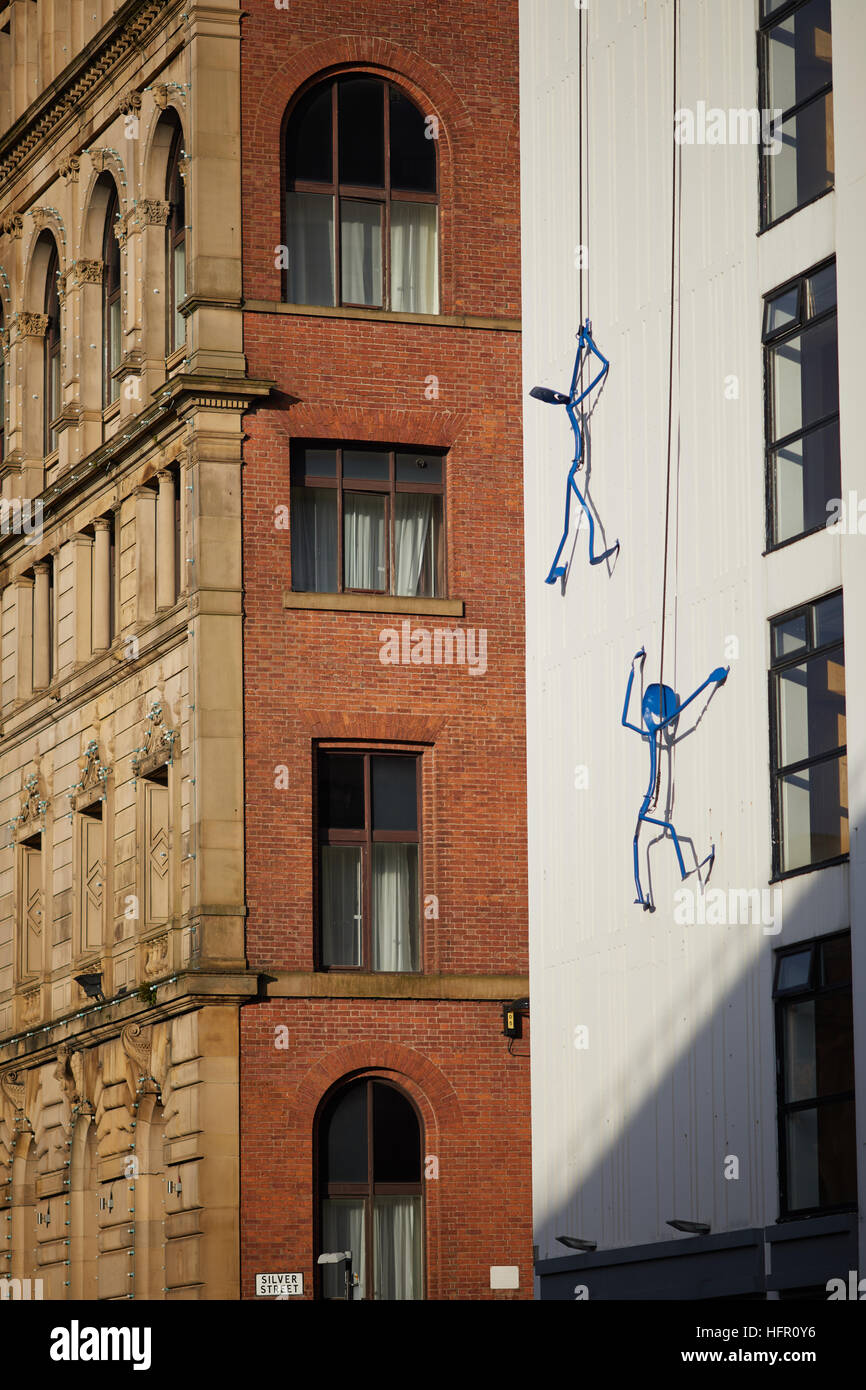 Manchester Chorlton Street Art Climbing Manchester Arthur House Stickmen Hanging Architectural Practice Cruickshank Seward Close Up Detail Abseili Stock Photo Alamy