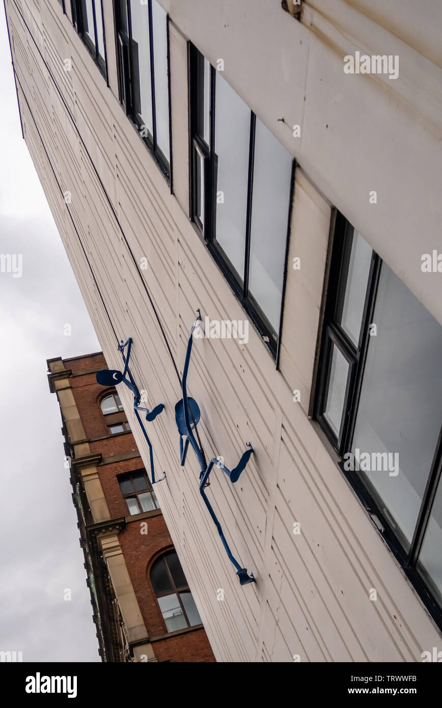 Sculpture Of Stick Men Climbing Up Arthur House On Chorlton Street Manchester England Uk Stock Photo Alamy